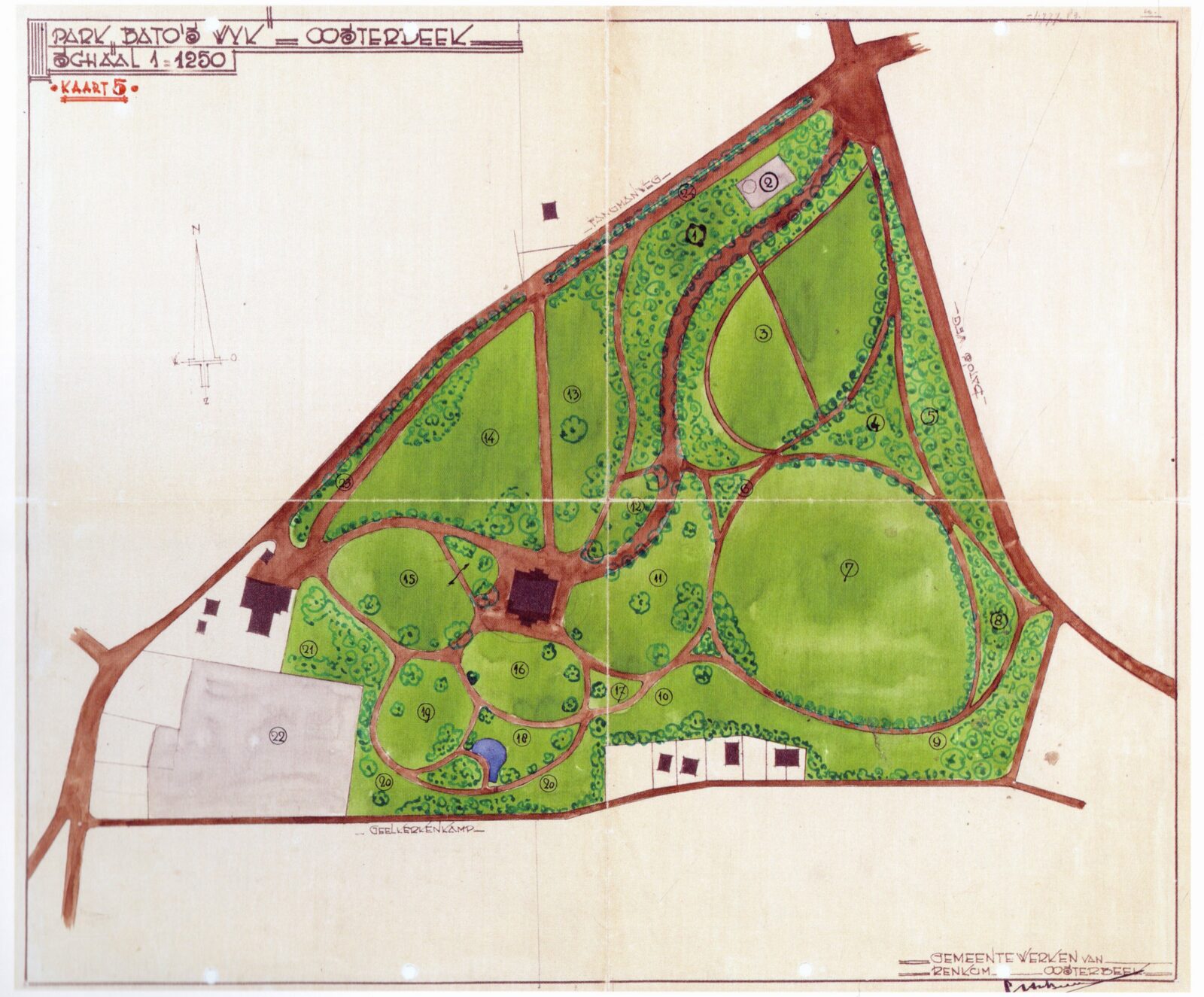 Samen met Springer ontwerpt Voorhoeve een kassencomplex, een uitbreiding van de oranjerie. Scheidius’ hobby was kuipplanten kweken. In 1927 koopt de gemeente Renkum Bato’s Wijk om er het gemeentehuis te vestigen. En tja, om de kosten te dekken, wil de gemeente het park verkavelen. Voorhoeve verzet zich hier met succes tegen. Om een lang verhaal kort te maken – je leest het boek maar: Bato’s Wijk is vandaag de dag een gemeentelijk monument en de bijzondere bomen zijn inmiddels indrukwekkend groot.