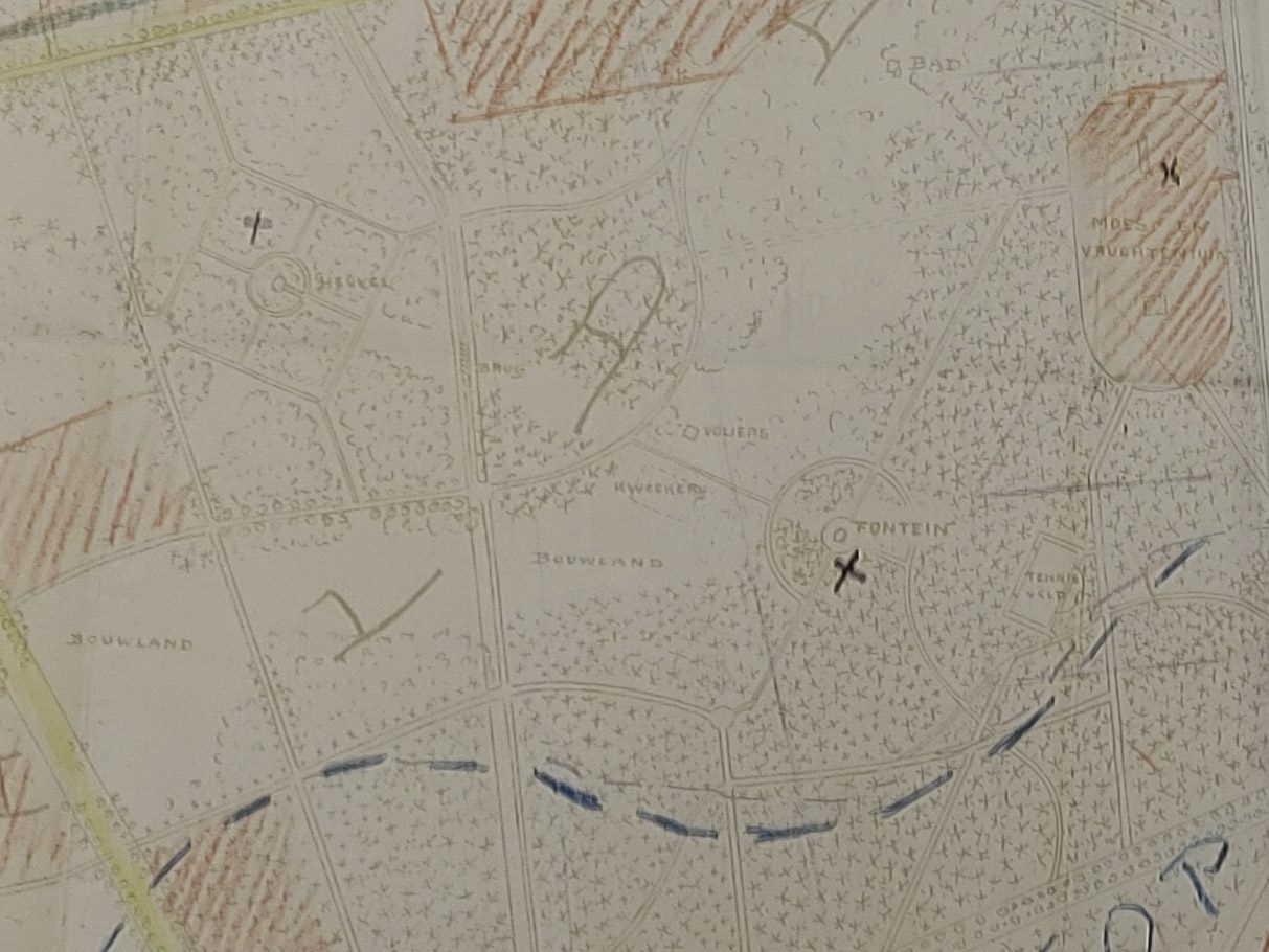 In het boek lees je hoe en wanneer – Springer ontwierp de tuin voor het landhuis – Voorhoeve zich met de Bilderbergbossen bemoeide. Het ontwerp is bijzonder. Er werd een heuveltje (belvedère) aangelegd, die in een vierkant van paden ligt (dat zie je niet als je er wandelt). Paden zijn hier en daar uitgegraven en er is een bruggetje (folly) aangelegd. Het is er allemaal nog steeds. Misschien is de belvedère, het heuveltje, een mooie plek om een standbeeld of een plaquette van Samuel Voorhoeve te plaatsen?