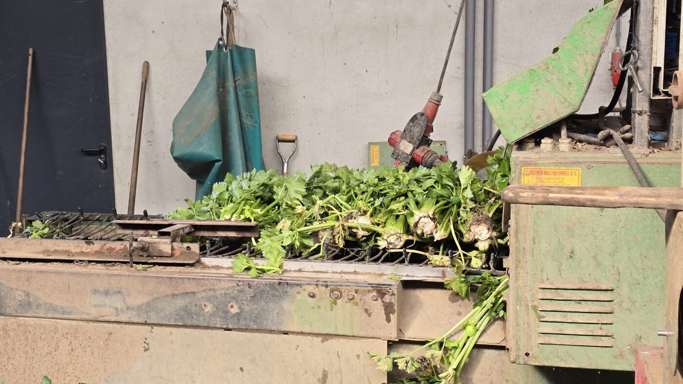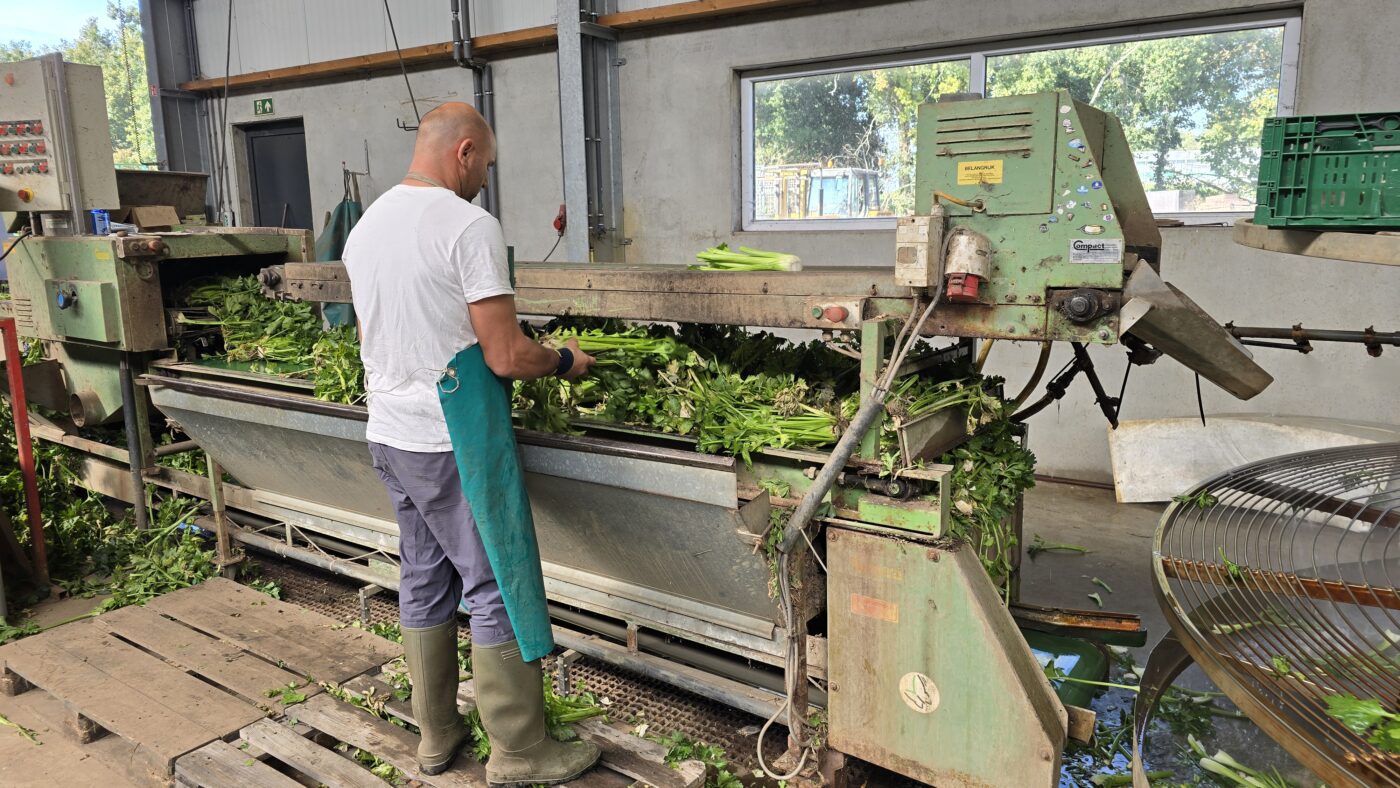 In de grote hal zien we hoe de bleekselderij – tegenwoordig groenselderij – wordt schoongemaakt.