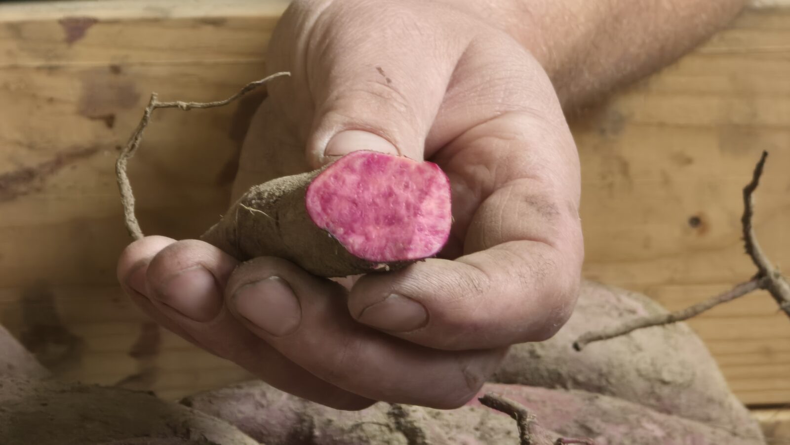 “En welke bataat is dat, die nu wordt geoogst?” vraag ik.