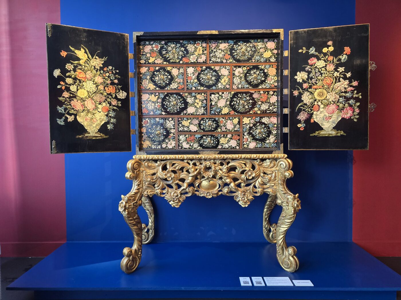 Beneden is meer aandacht voor de tulp in de kunst: stillevens, aardewerk, legio prachtige tulpenvazen. En een werkelijk prachtig Charles II kabinet uit pakweg 1690.