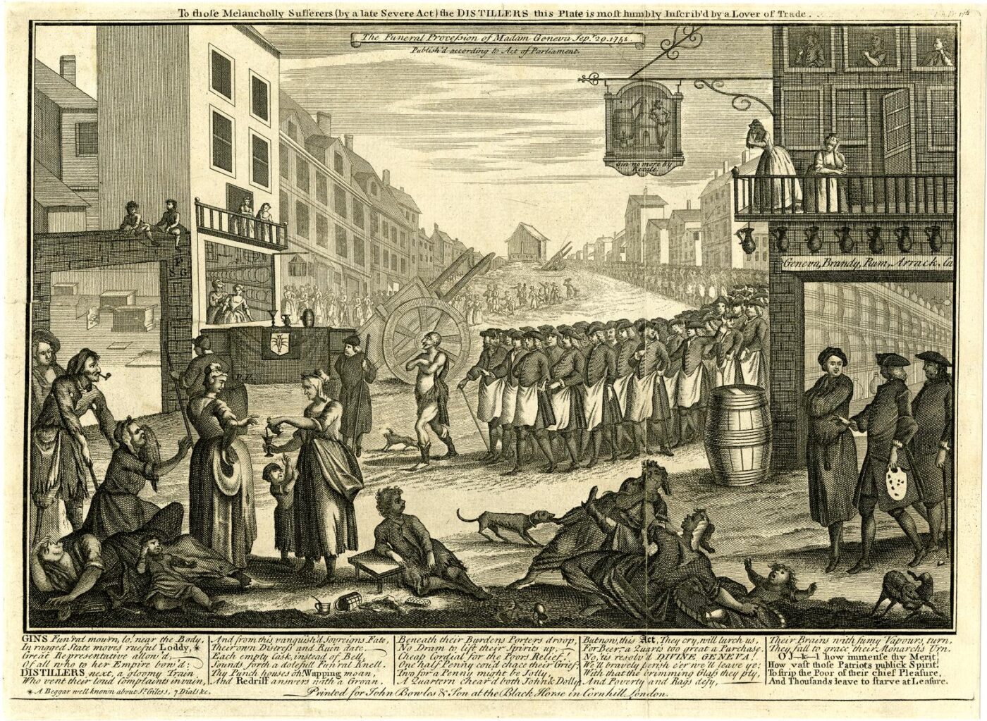 “Drommen arme mensen verzamelden zich rond deze nepkatten om zich ter plekke te bedrinken. Het was een blamage voor de Gin Act [….]”