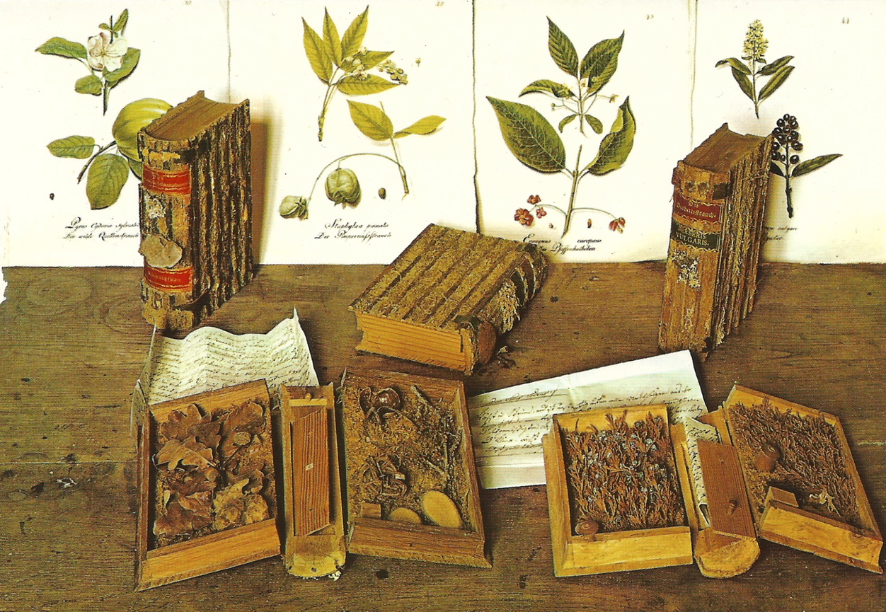 In het souterrain van Kasteel Groeneveld in Baarn staat een kast met vijftig verschillende houten boeken, oftewel boomboeken, begin negentiende eeuw gemaakt door de Duitse plantkundige en bosbouwer Alexander Schlümbach. Eén van de boomboeken in de vitrine toont opengeslagen zijn inhoud: