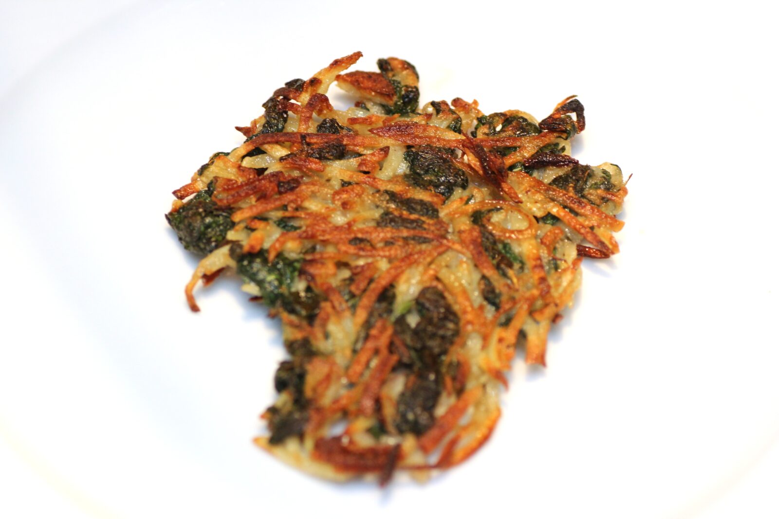 Een makkelijk en praktisch gerecht: aardappelkoekjes met knopkruid. Eigenlijk rösti met knopkruid erdoor. Erg smakelijk en bovendien gezond. (Het is eigenlijk rösti met knopkruid.)