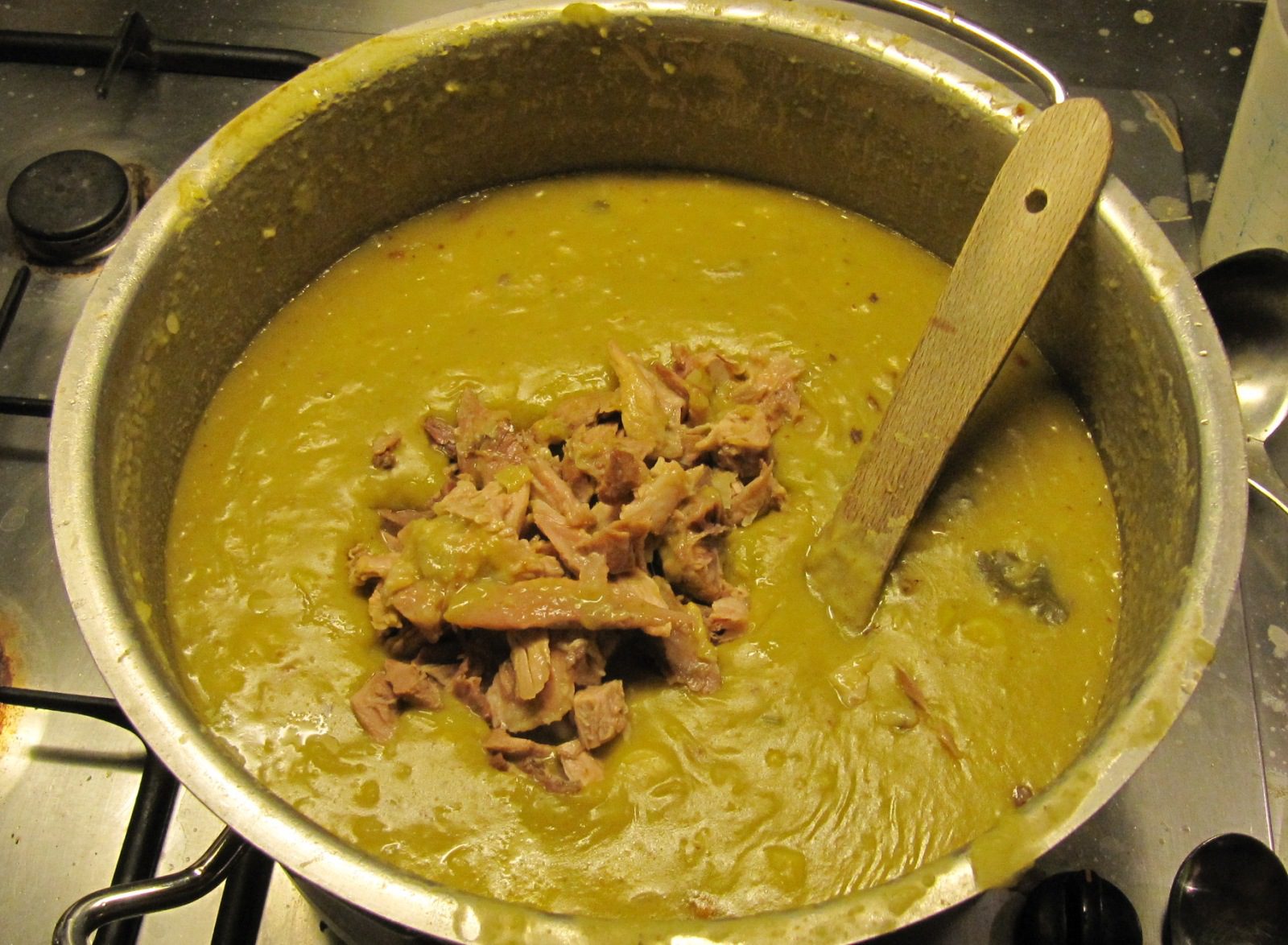 Maar het vel van de poten (en van het hammetje) vind ik juist het lekkerste in de soep, verdorie.