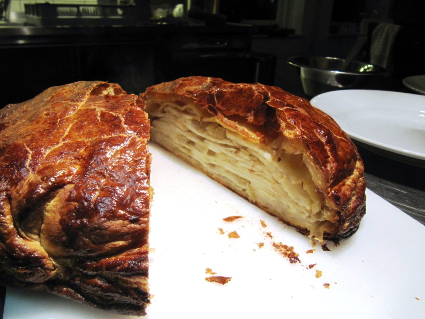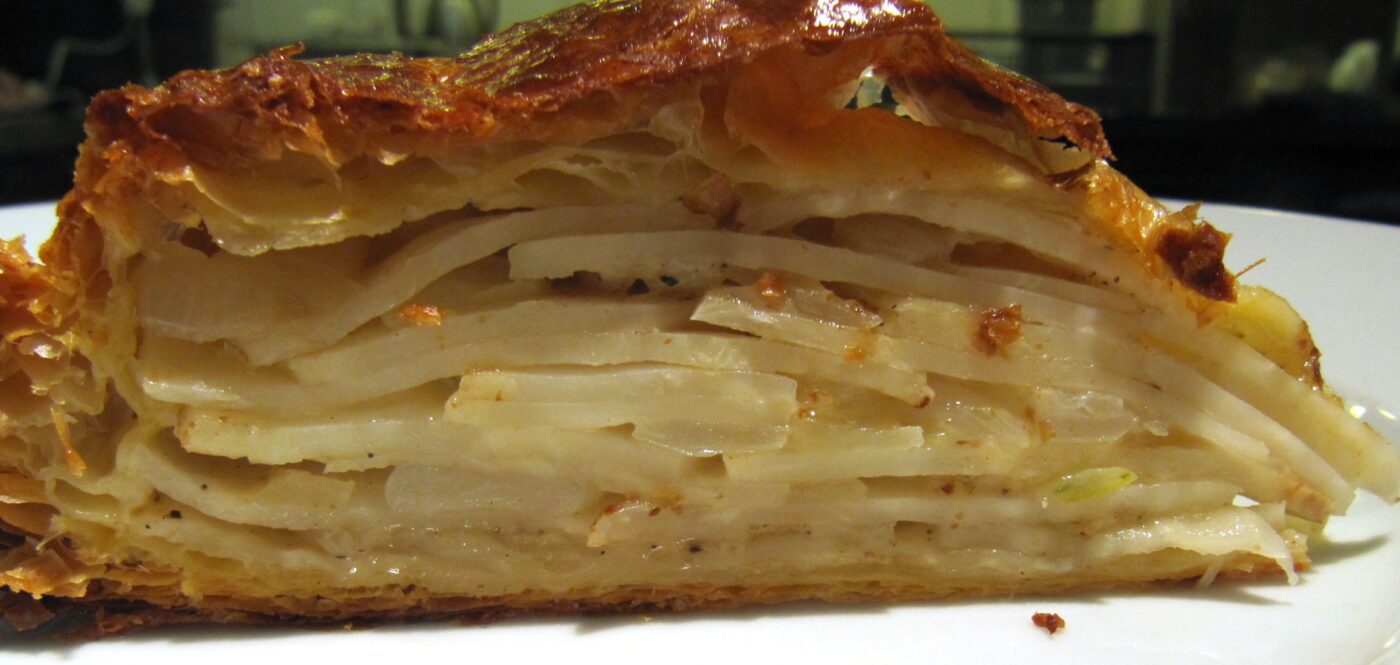 Verrassend lekkere taart van dunne plakken knolselderij. Misschien koud nog lekkerder.
