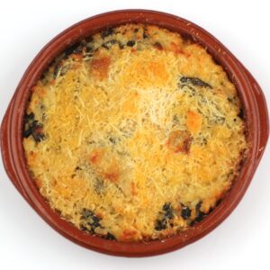 Schuif in de hete oven en haal het er na 20-25 minuten weer uit als de bovenkant mooi bruin is. Serveer!
