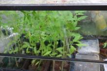Zaai tomaten ondiep. Wij zaaien in bakjes en verspenen in trays. We hebben ooit een terrarium (met verwarmingselement in de bodem) omgebouwd tot kleine opkweekkas.