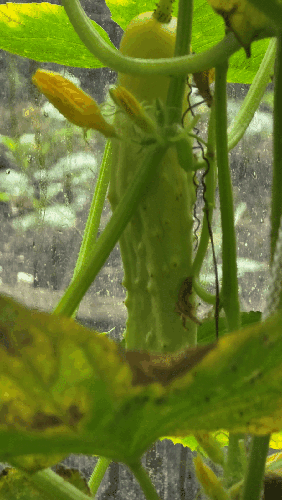 Wij hebben de komkommer klimmend in onze kas vermeerderd. Eigenlijk is het er een om onder plat glas over de aarde te gaan. (Dat voorkomt ook dat de grotere komkommer een zgn buik krijgt.)