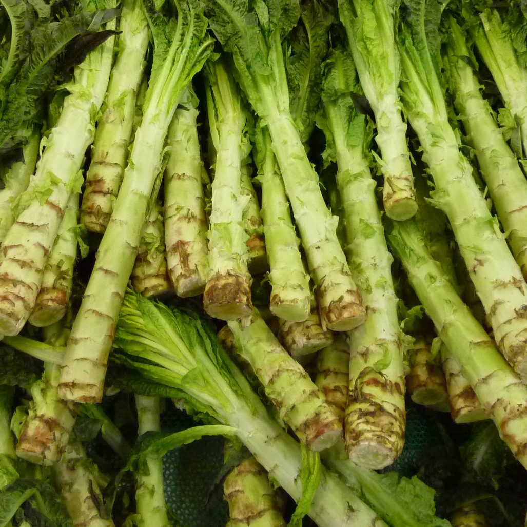 Normaliter schiet sla in zaad met een slappe (holle) stengel. Dit is iets anders. Het gaat hier om de massieve dikke taps toelopende stengel. Die eet je namelijk. Het is, geschild, mooi helder groen en heeft een notige smaak. Het blijft stevig als je het erwerkt. Heel geschikt voor roerbakschotels en rauwkostsalades.