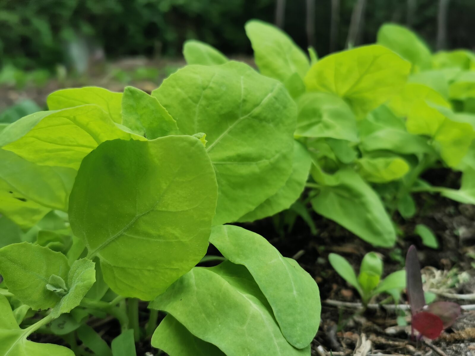 Desalniettemin wordt het nog door hobbyisten, zoals wij, geteeld. Uit de tuin en hoppa, in de pan. Dit is de gele melde, lichtgroen blad, tegen geel aan.