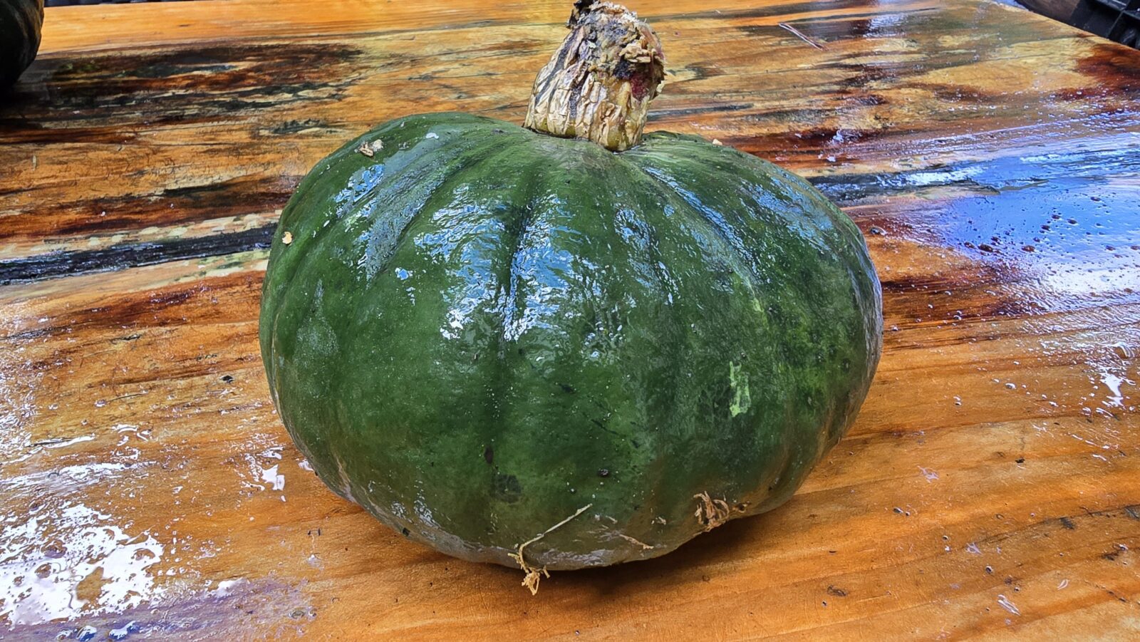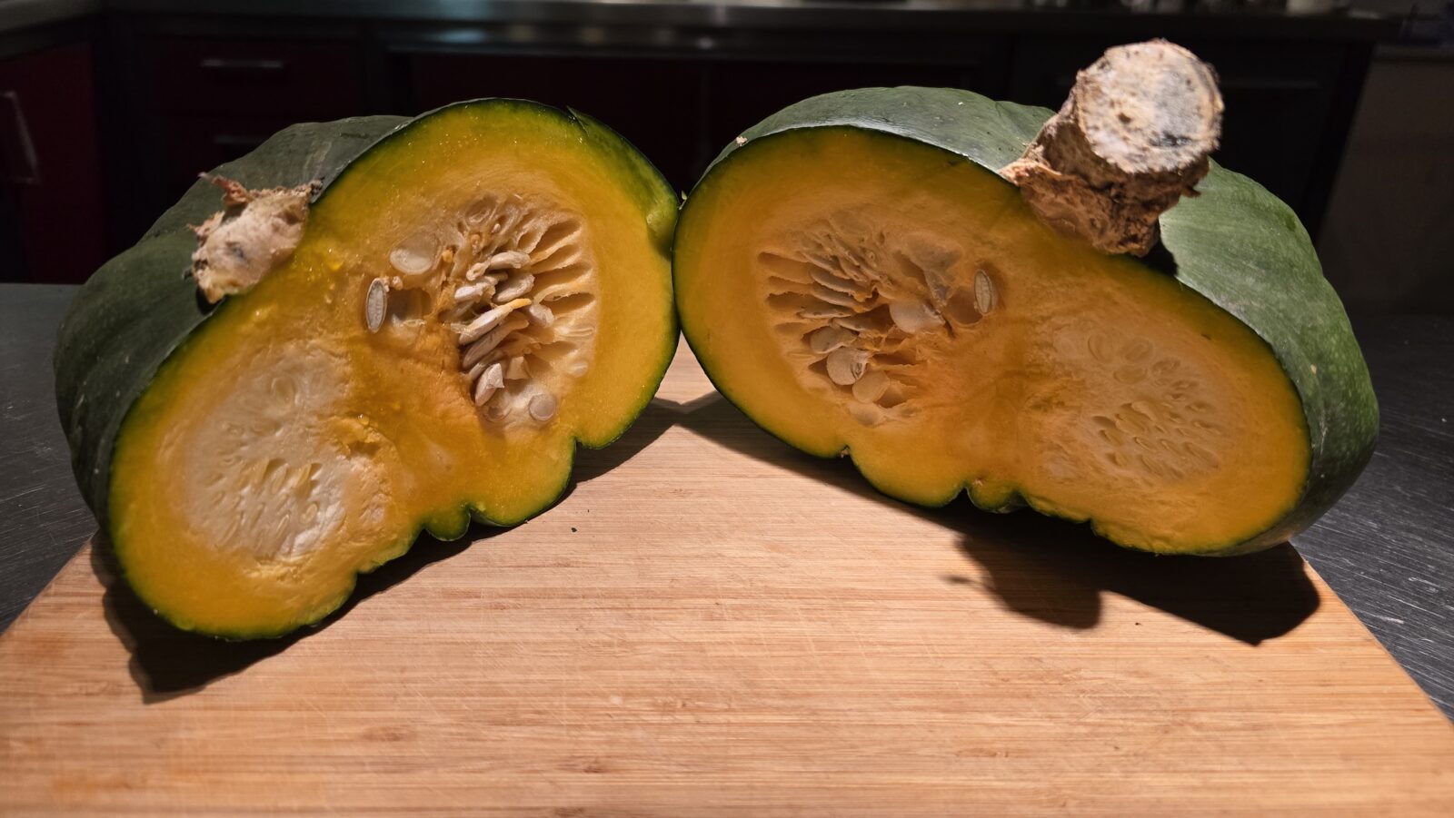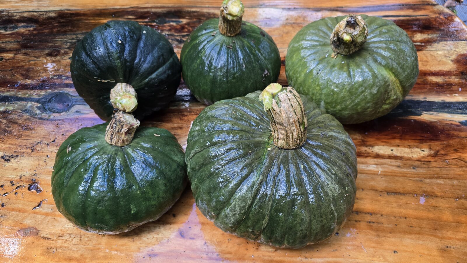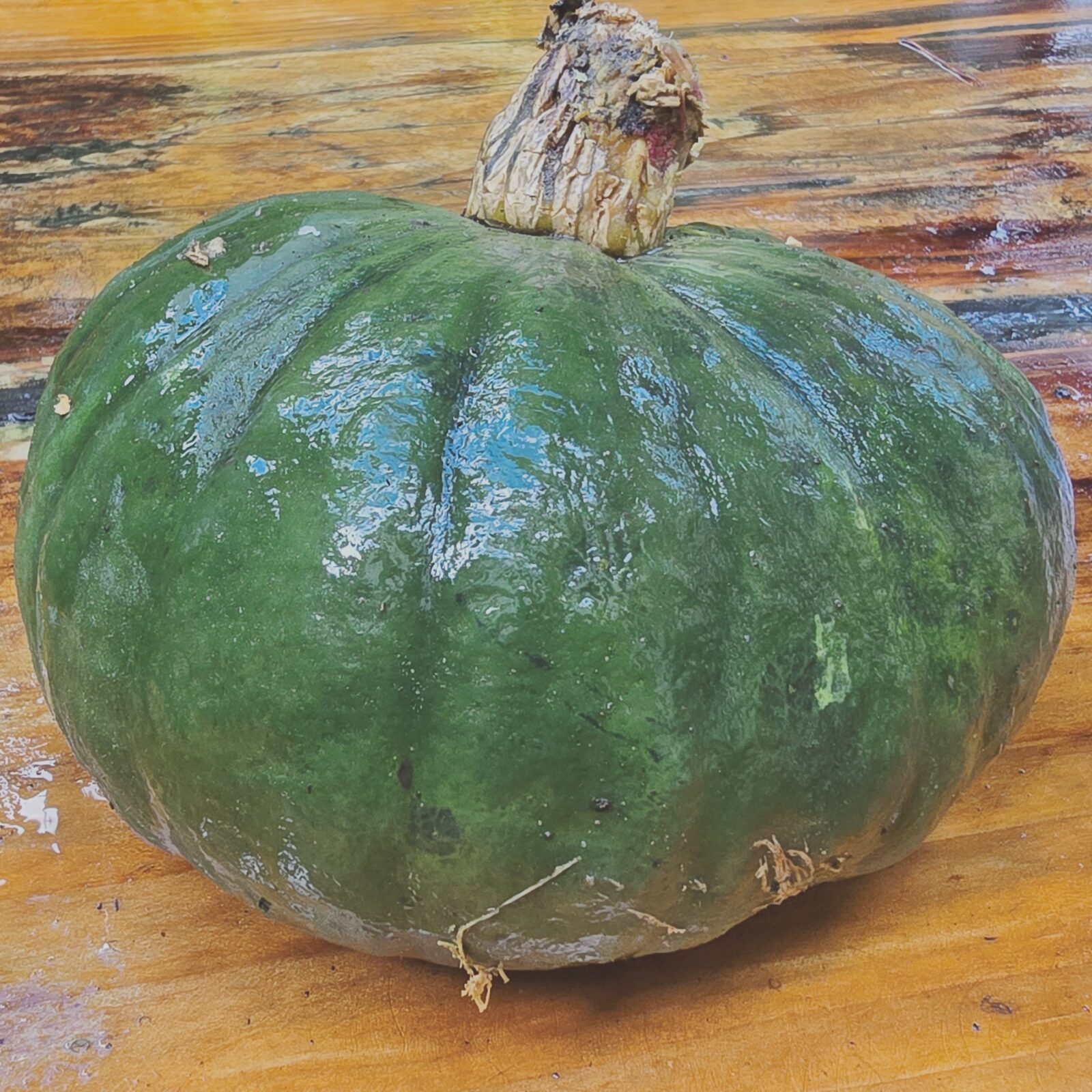 De vruchten zitten meestal rond de 25 cm in doorsnede en wegen zo’n 5 kilo. Ze hebben een wat afgeplatte vorm. De smaak is zoet en het vruchtvlees is oranje-geel. Deze pompoen rankt, zoals de meeste pompoenen. Maar laten klimmen is risicovol, de pompoenen worden te zwaar. Zorg voor goede bemesting. (Wij laten ze wel klimmen in een rek van betonijzer.)
